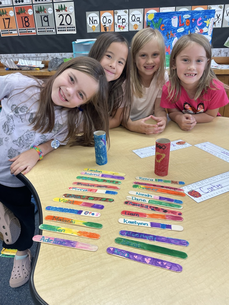 Ms.Etten’s first grade class was challenged by headquarters during their EL module to make a magnificent thing for their classroom. Students were to come up with a problem in the classroom and think of what is missing to make it better or fill the void. They then had to work hard showing collaboration, perseverance, initiative, and responsibility to work through the planning process of rough drafts, collection of tools, trial and error, and obviously the construction of it being built!