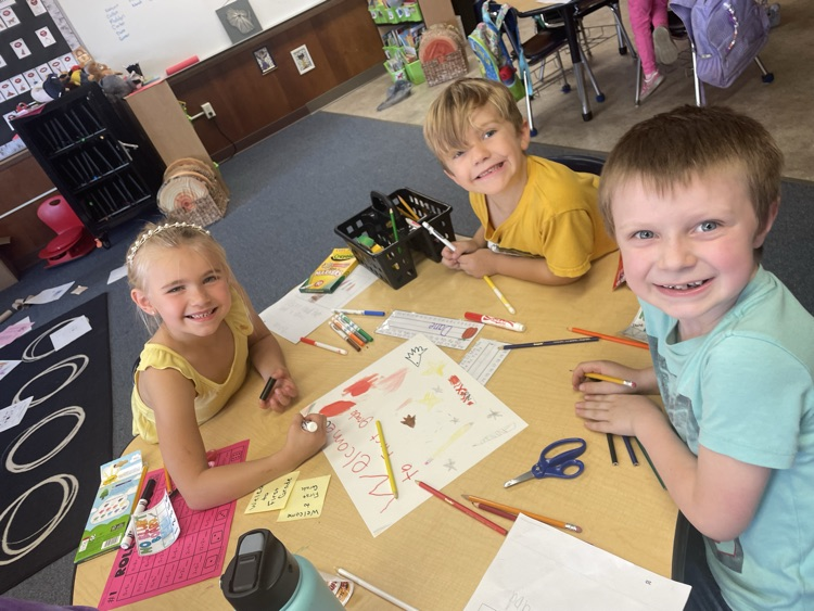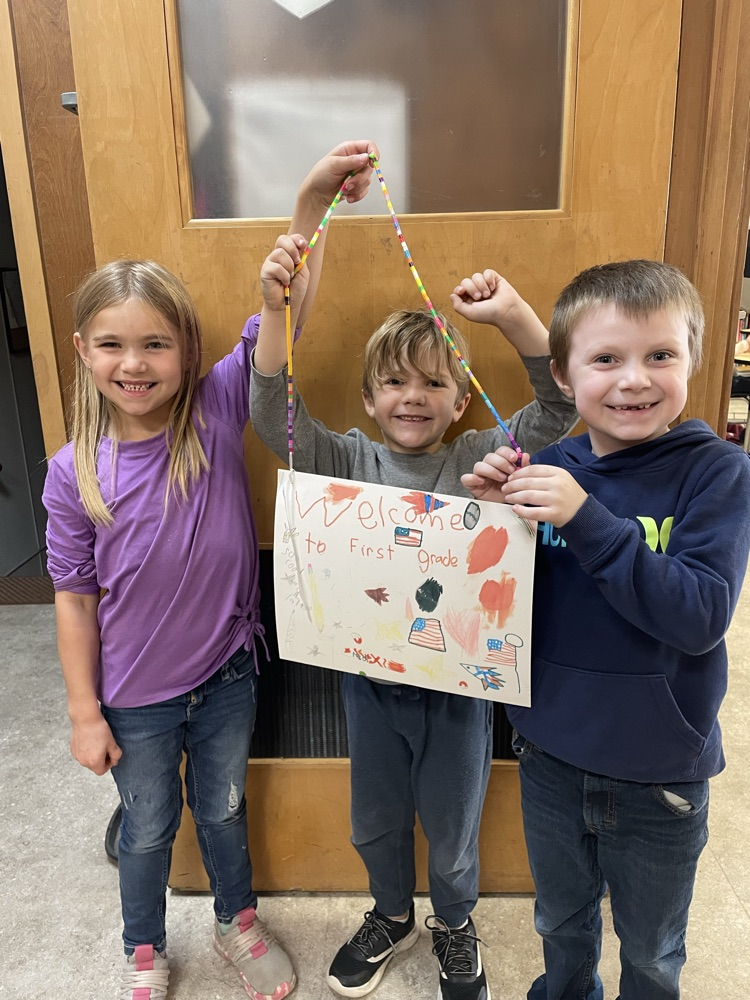 First Grade Classroom Welcome Sign - built by Malachi, Andrew, and Norah